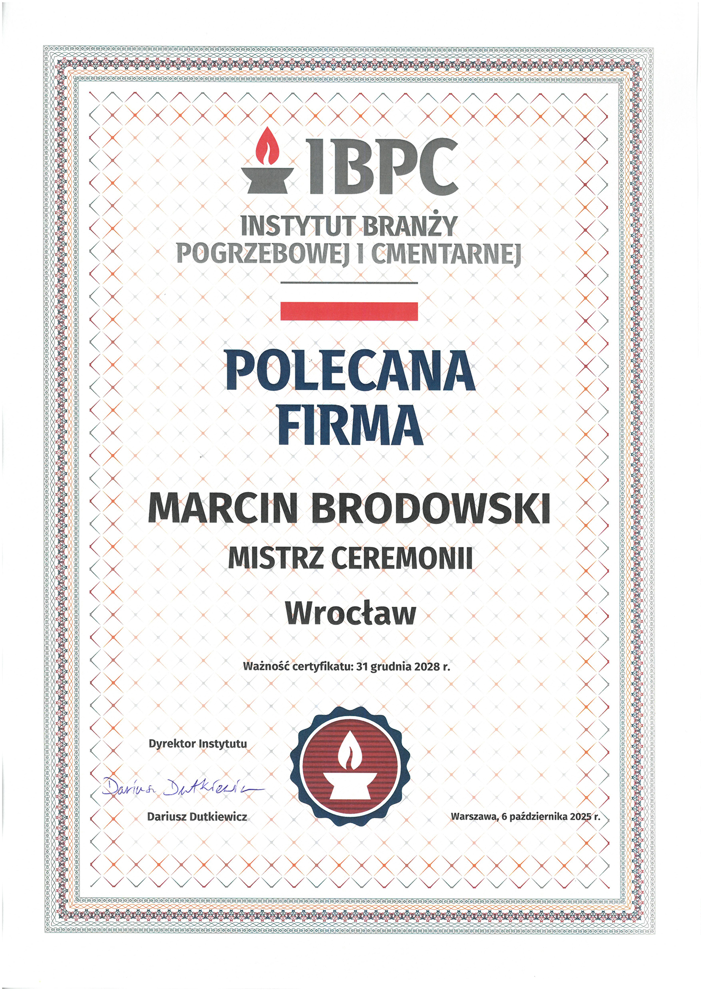 Z klasą i spokojem prowadzę uroczystości świeckie, humanistyczne i wspomagające liturgię. Każde pożegnanie jest niepowtarzalne.